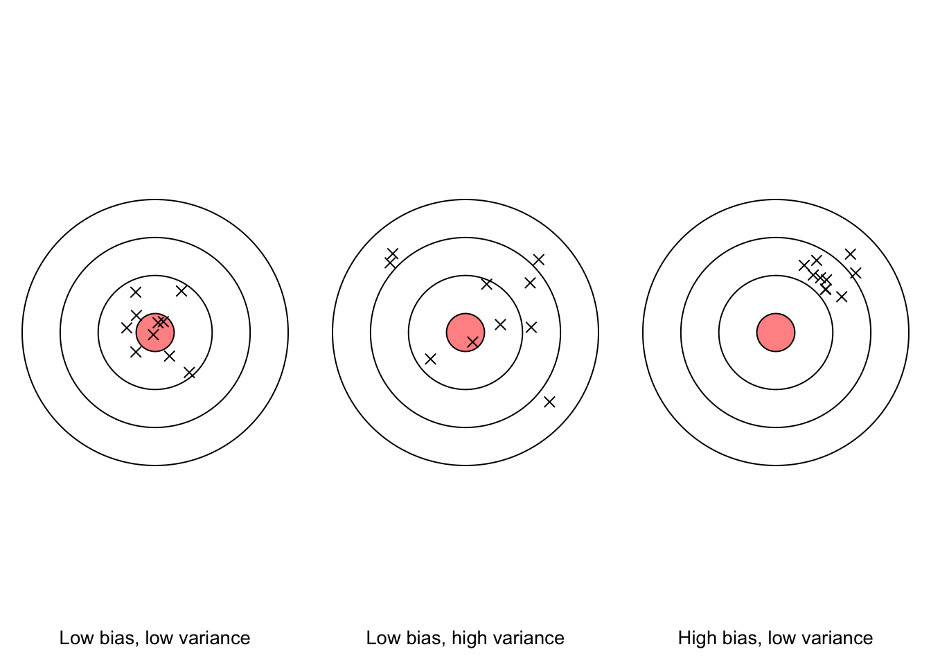 Figure 3.2: Archery analogy for the concepts of bias and variance