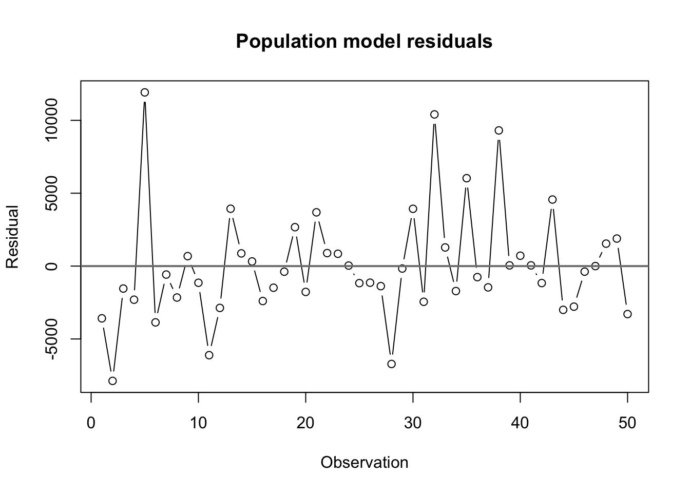plot(state.lm$residuals,type='b',main='Population model residuals',