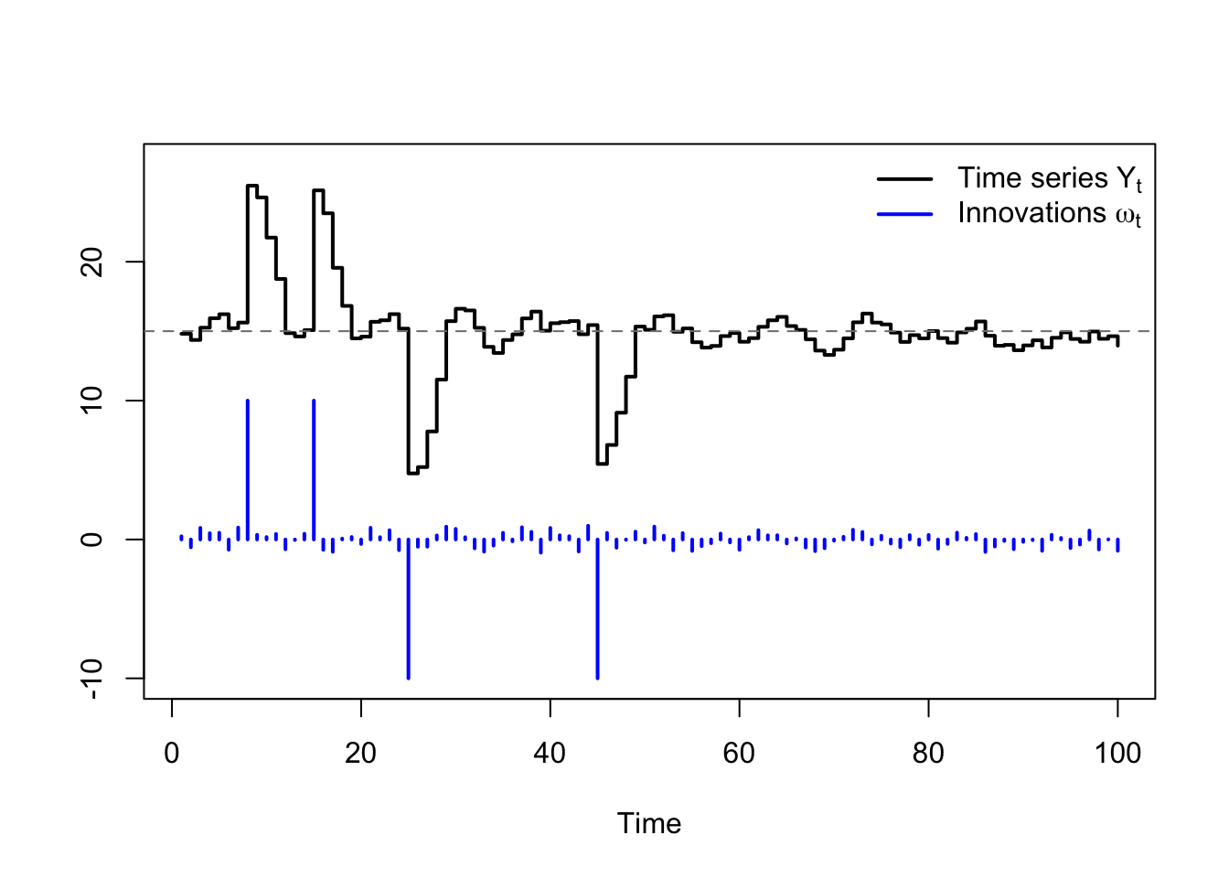 \[Y_t = \omega_t + \theta \omega_{t-1}\]