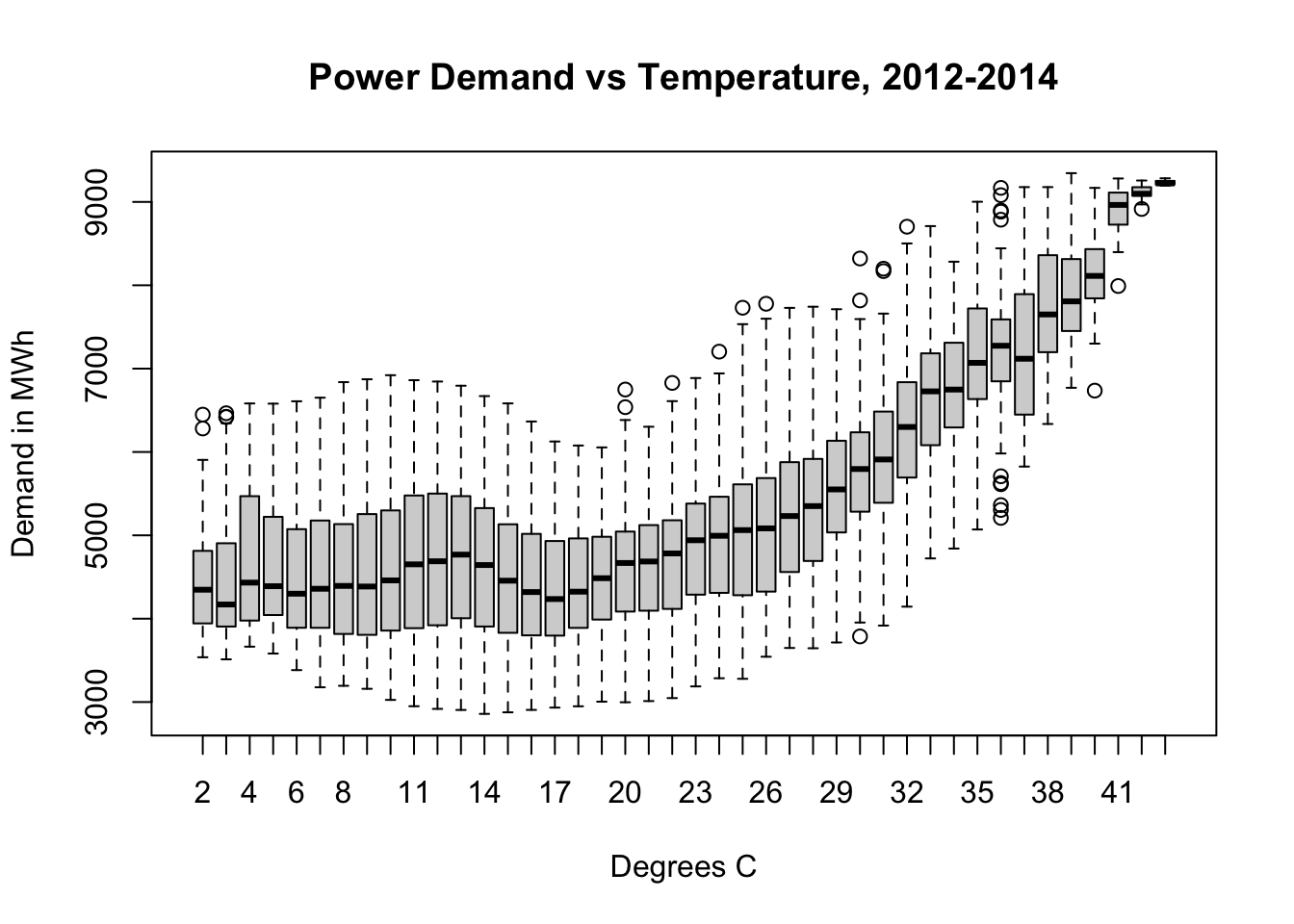 We’ll need to treat temperature carefully. The power needed to heat or cool Victoria is not linear with temperature; every extra degree away from a comfortable range takes more power to heat or cool away than the last one. Some amount of demand will only be seen when it’s hot, other types of demand will only be seen when it’s cool.